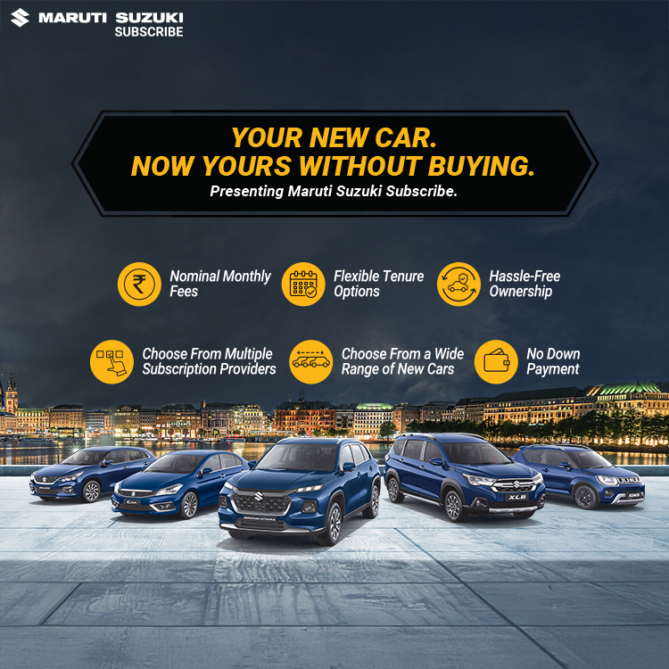 Maruti Suzuki Subscribe enables all customers to enjoy driving their preferred Maruti Suzuki cars without having to deal with all the financial responsibilities that come with owning a car.All you need to do is opt for a monthly subscription plan at a fixed monthly fee, which includes the routine maintenance and insurance costs, and choose a flexible tenure. At My Car in, , Mumbai, all Hatchback, Sedan, SUV, the MUV models line-up includes Baleno, Invicto, EVitara, Jimny, Ciaz, Ignis, Fronx, Grand Vitara, XL6. Here, you will enjoy Maruti Suzuki Subscribe benefits such as: